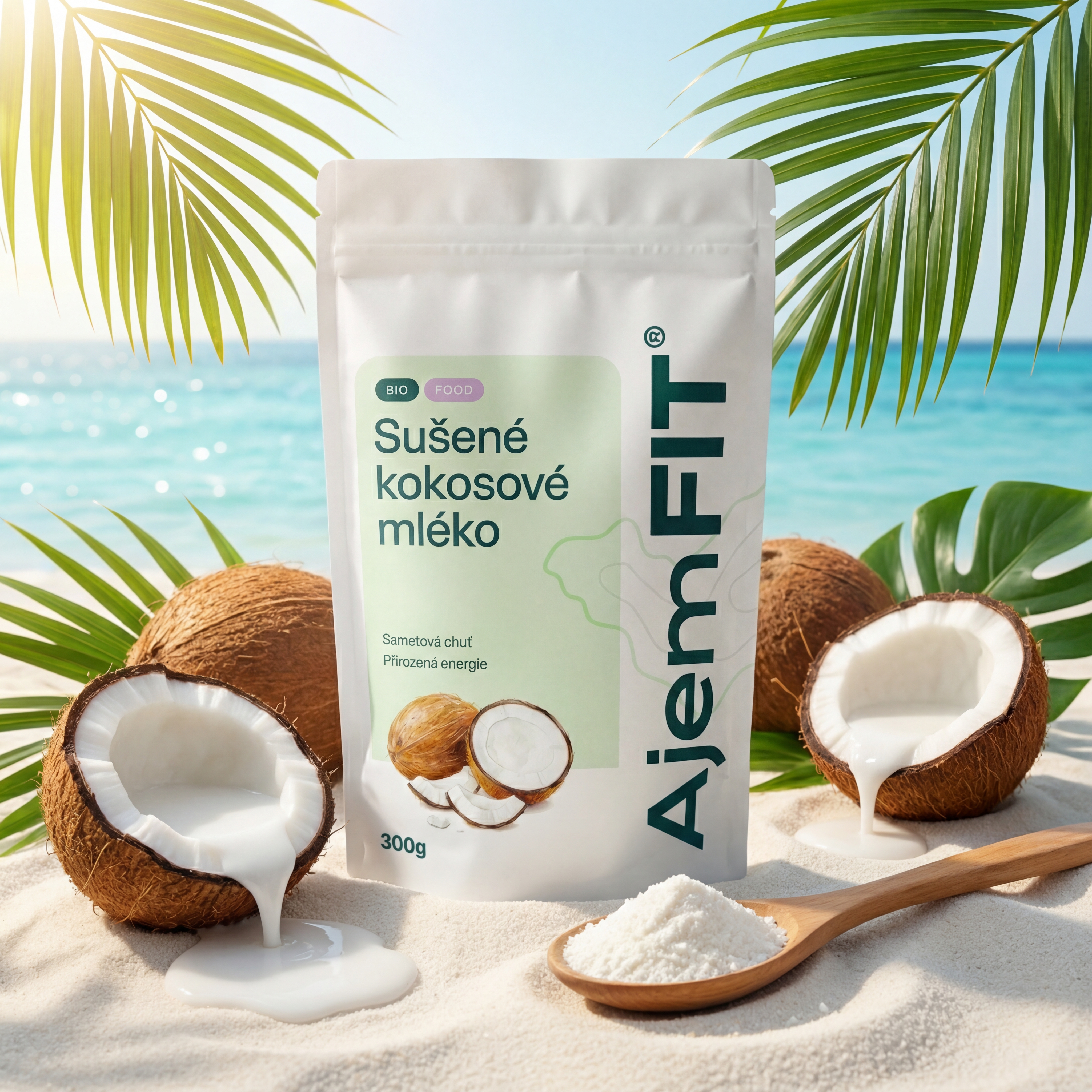 Sušené kokosové mlieko AjemFIT je praktická a skladná alternatíva ku klasickému kokosovému mlieku. Vzniká šetrným spracovaním kokosovej dužiny do práškovej formy, vďaka čomu si zachováva prirodzenú chuť a zároveň umožňuje presné dávkovanie bez zbytočného plytvania.