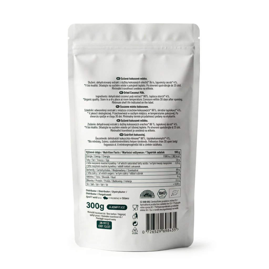 Kokosové mlieko v prášku je skvelou voľbou pre každého, kto chce mať kokosové mlieko vždy po ruke, bez toho, aby musel riešiť otváranie plechoviek alebo zvyšky. Vďaka práškovej forme má dlhú trvanlivosť, ľahko sa skladuje a využijete ho kedykoľvek bez nutnosti plytvať.