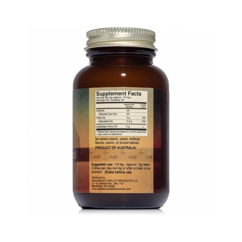 Rodová linia Austrálskych vtákov EMU je stará milióny rokov. Značka Walkabout Health používa ako zdroj tohto oleja iba prastarý genotyp natívneho EMU, ktorého export z Austrálie bol zakázaný už v roku 1960.