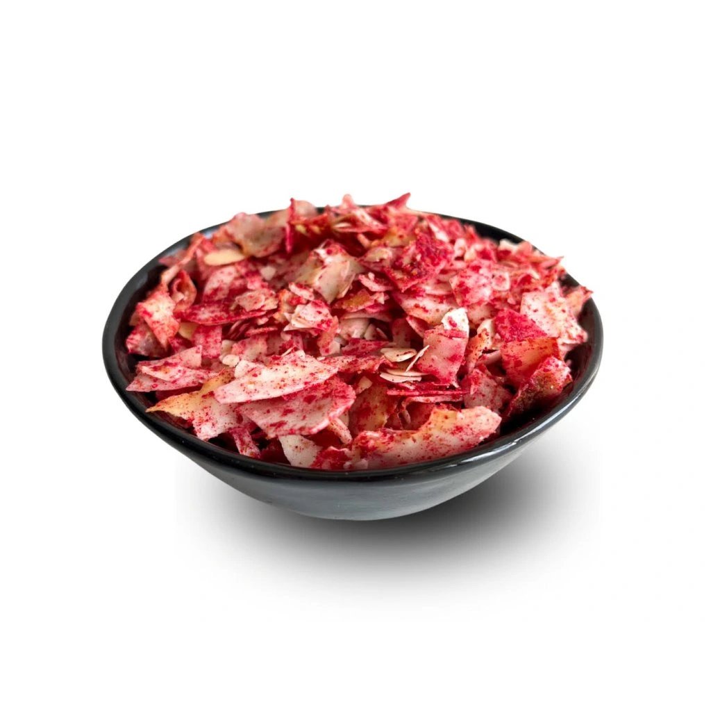 Zahryznite sa do krásne chrumkavého kokosu, ktorý je doplnený o tenké plátky mandlí. Ešte horúca zmes je obalená v lyofilizovaných malinách.