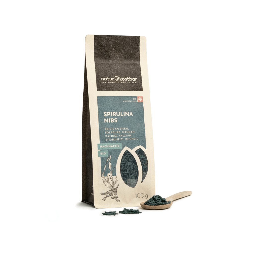 Naša prémiová spirulina vo forme chrumkavých nibsov pochádza z ekologicky kontrolovaných plantáží v Portugalsku. Pestovaná bez chemických látok a ťažkých kovov, sušená na slnku a spracovaná vo švajčiarskej remeselnej manufaktúre, spĺňa tie najvyššie štandardy. BIO certifikácia a udržateľné pestovanie zaisťujú, že získavate produkt špičkovej kvality.