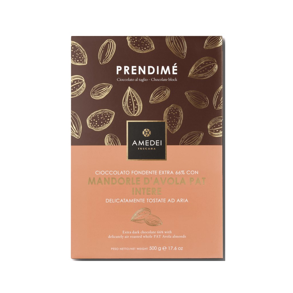 ZLOŽENIE: kakaová hmota, trstinový cukor, mandle avola (30 %), kakaové maslo. Obsah kakaa: min. 66 %. Môže obsahovať stopy mandlí, pistácií, vlašských orechov, mlieka.