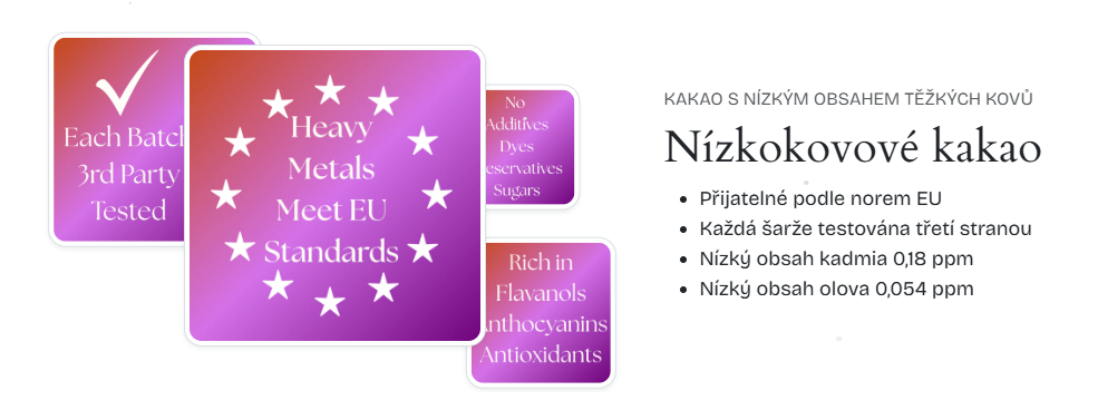 - Vynikajúci obsah minerálov, polyfenolov, antioxidantov, teobromínu, antokyanov a horčíka