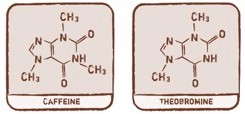 „Teobromín patrí do rovnakej triedy stimulantov ako kofeín, ale je úplne odlišný, pretože ponúka dlhšie trvajúcu a uvoľnenejšiu energiu bez prudkých výkyvov a následného poklesu. Teobromín dokonale vyvažuje kofeín.Na rozdiel od kofeínu nie je teobromín stimulantom centrálneho nervového systému, a preto zvyčajne nevyvoláva pocity na hrane nervozity a hlavne nie je návykový. Energia z teobromínu dodáva väčšiu koncentráciu a skôr harmonizuje/stabilizuje, než povzbudzuje.Teobromín a kofeín sú podobne štruktúrované typy farmakologicky aktívnych látok, ale s výrazne odlišnými účinkami. Teobromín je jemný, mierny, má pomalý nástup, je dlhodobý a nie je návykový, zatiaľ čo kofeín je intenzívny, silný, rýchlo pôsobiaci, krátkodobý a úplne návykový. Účinky prírodných alkaloidov v kakau sú skvele stabilizované jeho bohatým a stabilným tukom, vlákninou, elektrolytmi a mikronutrientmi a pôsobia v súhrne viac ako 200 látok synergicky ako superpotravina – aj preto sa kakau už od čias Aztékov prezýva pokrm bohov.