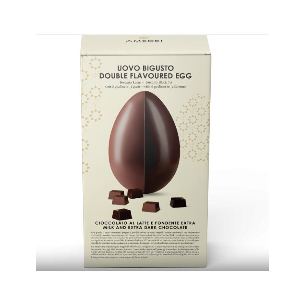 Mliečna čokoláda, ktorá už 9. rok po sebe získala titul najlepšej mliečnej čokolády sveta od Compagnia del Cioccolato, čo je jedna z najvyšších autorít v odvetví čokolády na svete.Práve z tejto prémiovej čokolády je vyrobené toto buď 80 g, alebo takmer polkilové (podľa varianty produktu) obrovské veľkonočné vajce v darčekovej krabičke s pralinkami vo vnútri. Ide o limitovanú edíciu na Veľkú noc 2023. Originálny a krásny remeselný darček na sviatky pre milovníkov kvalitnej čokolády.