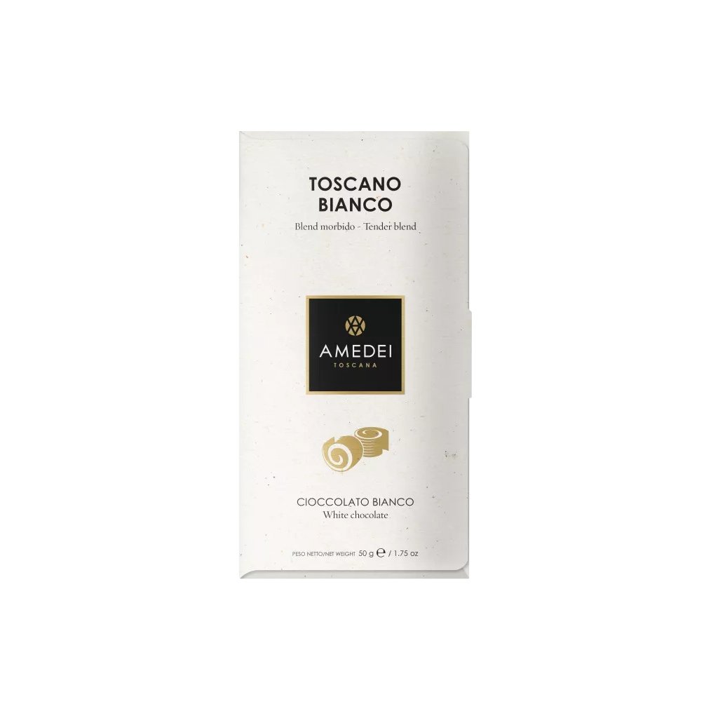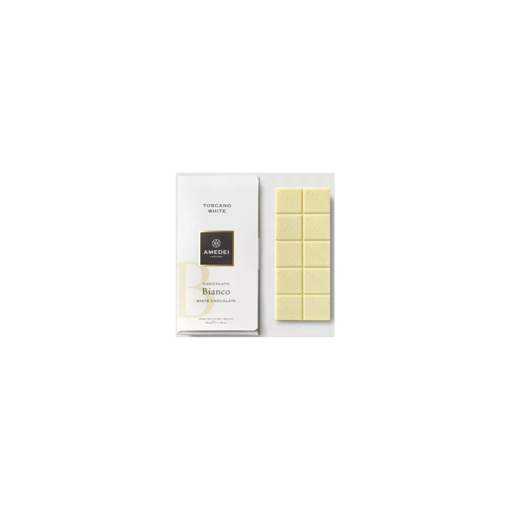 Výtvorom Toscano White ma Amedei prinútila porušiť zásadu a naskladniť aj jednu bielu tabuľku.. Okrem najvyšších ocenení zo svetových súťaží za dokonalú chuť sa totiž jedná o bielu čokoládu s pravdepodobne najnižším obsahom cukru na svete (iba 9,5 gramov na celú tabuľku), čo je ekvivalent množstva prírodného cukru v cca polovici jablka a zároveň nižšie množstvo, než obsahujú mnohé 70%+ tmavé čokolády! Chuť Toscano White je totiž postavená hl. na prémiovom kakaovom masle a čerstvom mlieku.
